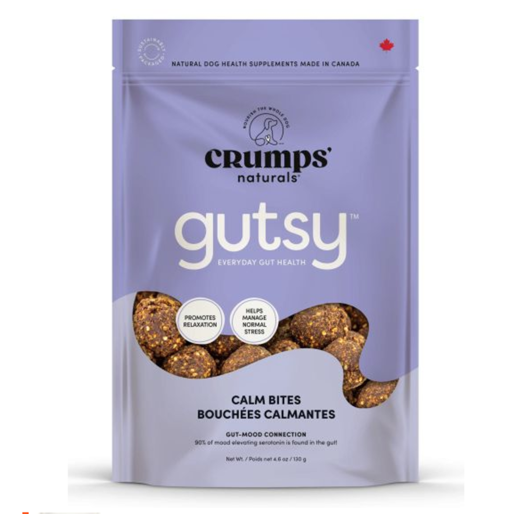 CloseCrumps' Gutsy Calm Bites help de-stress and promote relaxation with gut boosting prebiotics in every bite. Formulated with science backed ingredients like fermented yeast and powerful prebiotics to help naturally occurring good gut bacteria thrive. These tasty bites are infused with Ashwagandha and Reishi mushrooms known for stress-reducing properties, ensuring your pet's well-being from the inside out. Why? Because 90% of mood elevating serotonin is found in the gut!